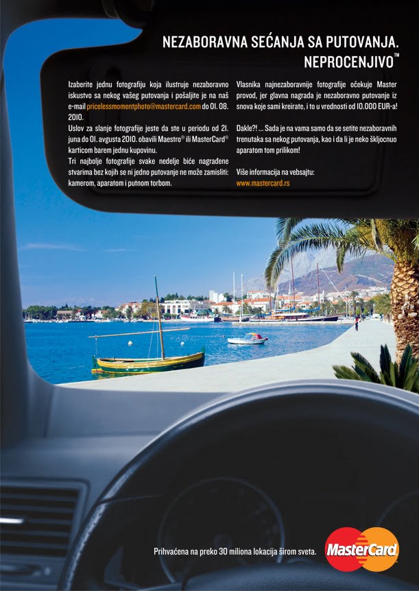 Izaberite jednu fotografiju koja ilustruje nezaboravno iskustvo sa nekog Vašeg putovanja i pošaljite je na email: pricelessmomentphoto@mastercard.com do 01.08.2010.